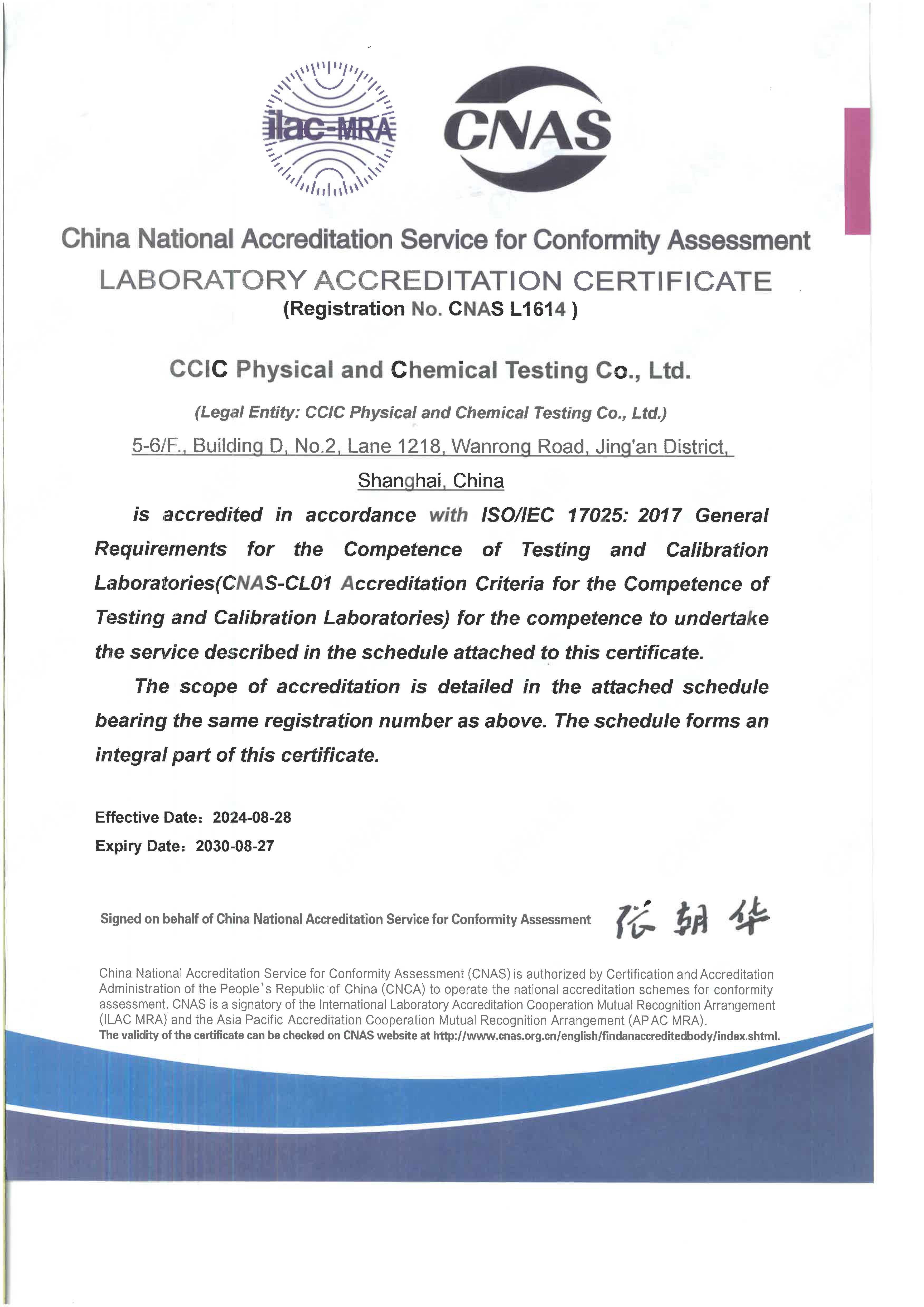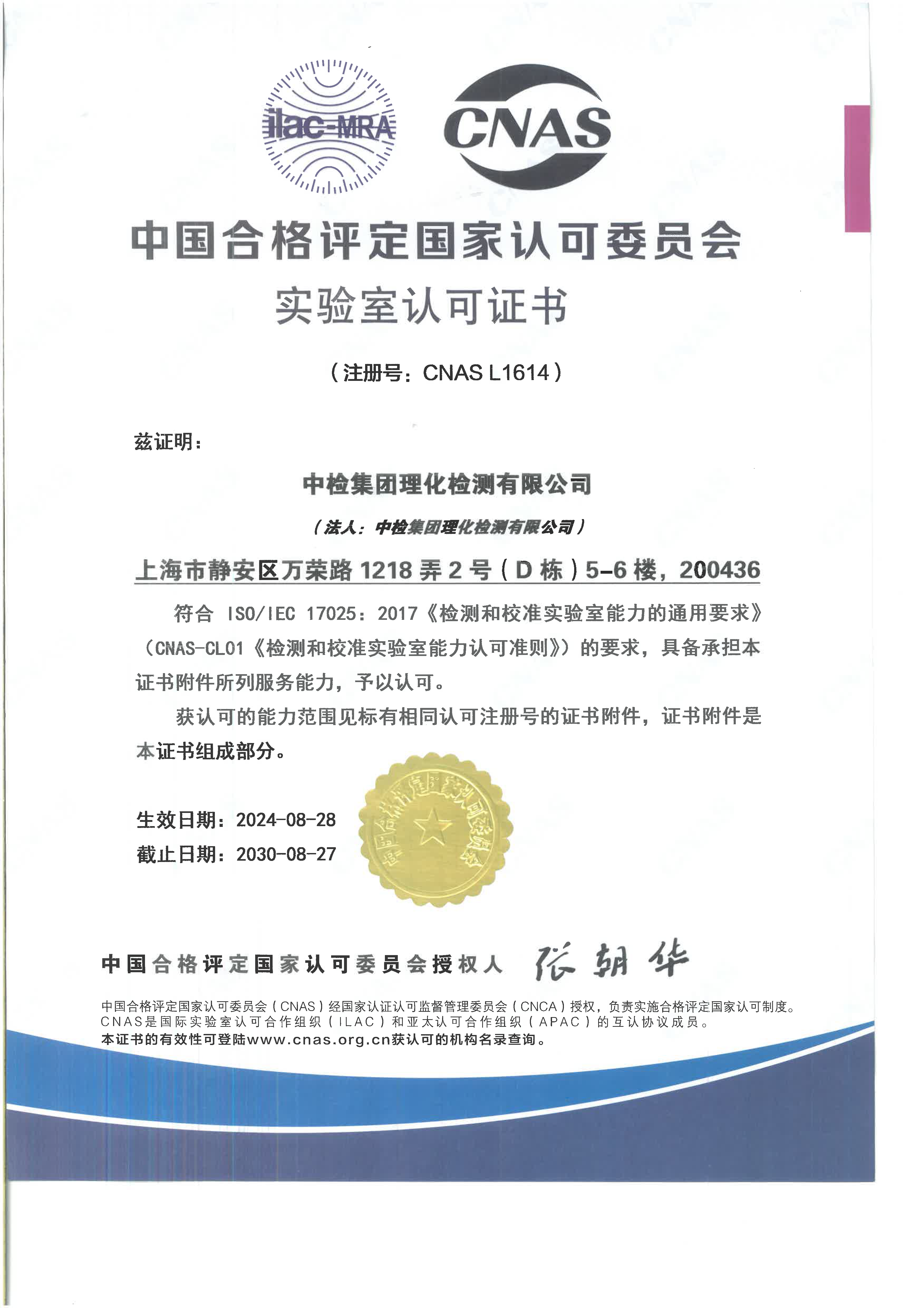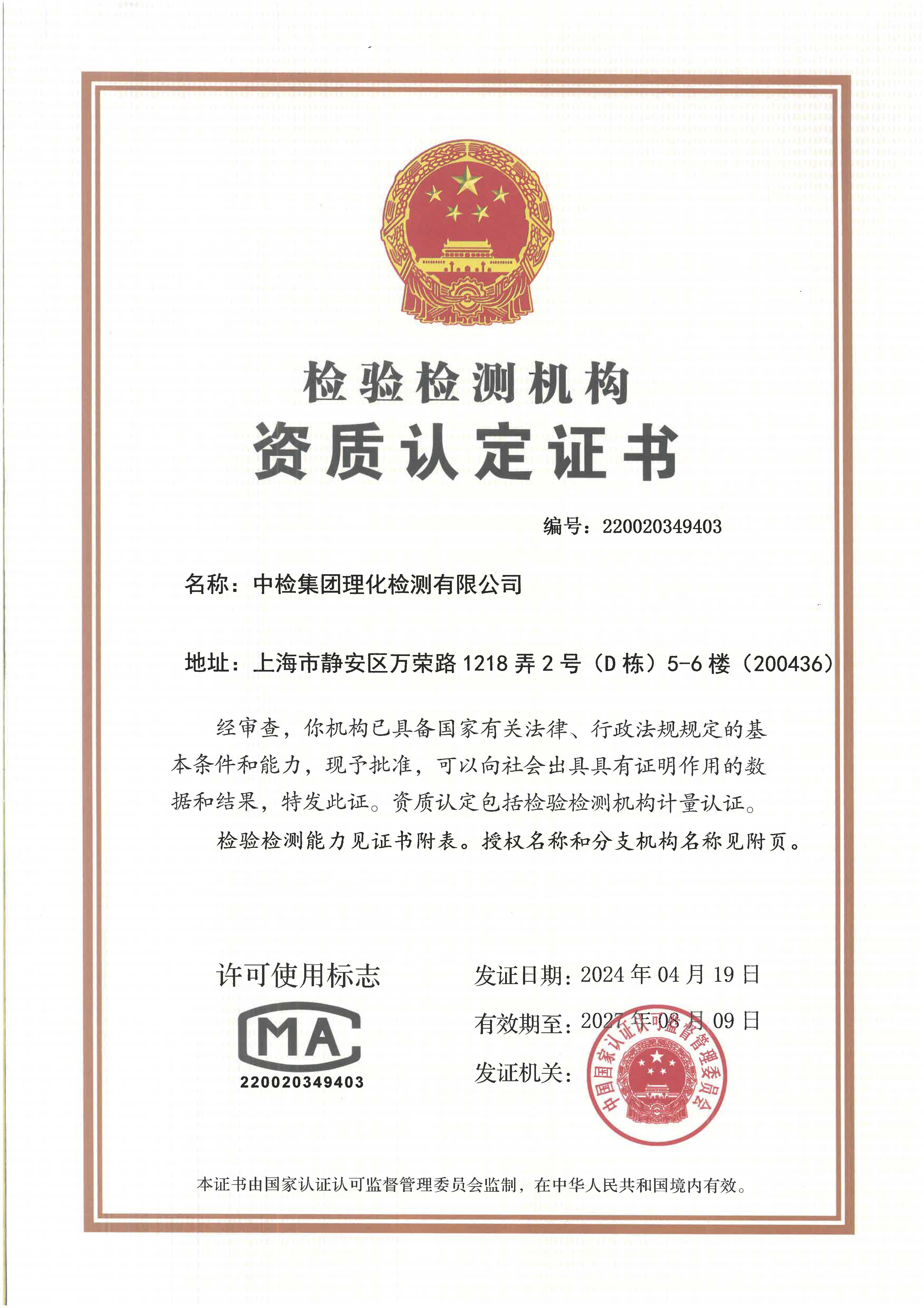 中检集团理化检测有限公司(中检理化,CCICLAB)是中检集团测试公司下属在环境检测领域的专业实验室,是中国环境学会的常务理事单位,是国家高新技术企业,是生态环境部、自然资源部和农业农村部指定的全国土壤污染状况详查实验室,是净水器国标的起草单位之一,是我国首家国家玩具质量检验检测中心,至今已有38年历史,长期致力于环境、玩具、净水器方面的第三方检测事业,资质能力范围广,涵盖了空气、水质、土壤、噪声、辐射、玩具、净水器等检测能力,获得国家计量认证合格单位(CMA)、中国合格评定国家认可委员会认可实验室(CNAS)、质量监督检验机构审查认可授权证书(CAL)、国家强制性产品认证指定检测机构(CCC)等重要资质,可以为场地调查检测、水质检测、污染源检测、大气检测、辐射检测、玩具检测、净水器检测等提供一站式的服务。
