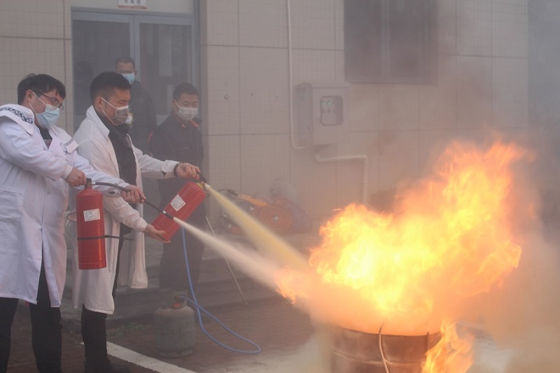 灭火器使用培训环节,由区消防队的专业消防员现场教学、示范灭火器使用步骤,参加演习人员认真学习,并通过现场演练,掌握了灭火器的使用方法。