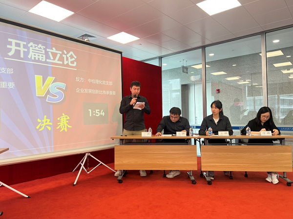随后,辩论赛正式拉开帷幕。中检理化党支部、玩具公司本部党支部、玩具公司好玩聚党支部、厦门国际银行上海分行第六党支部分别就“选择比努力更重要还是努力比选择更重要”、“成大事者不拘小节还是成大事者也拘小节”、“企业发展传承比创新重要还是企业发展创新比传承重要”等辩题展开了激烈交锋。大家唇枪舌剑、妙语连珠,现场掌声不断。中检理化党支部积极准备,几位辩手之间默契配合,从自己的论点出发,据理力辩,成功进入决赛,并最终获得了团队第二名,胡先鹏获个人“最 佳 辩手”好成绩。