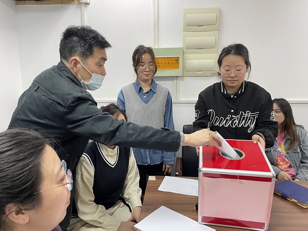 最终,李志同志当选工会主席,工会委员为张宇、黄晶晶、陈婷婷、沈康4人当选;孟洁萍同志当选经费审查委员会主任,经费审查委员会委员为刘智慧、范晔2人当选;张宇当选女职工委员会主任,女职工委员会委员为陈佳露、曹思卉2人当选。
